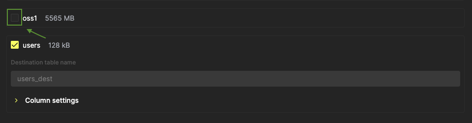 В некоторых случаях может потребоваться добавить в ClickPipe только определённые таблицы. Такая необходимость часто возникает по мере масштабирования ваших транзакционных или аналитических нагрузок.